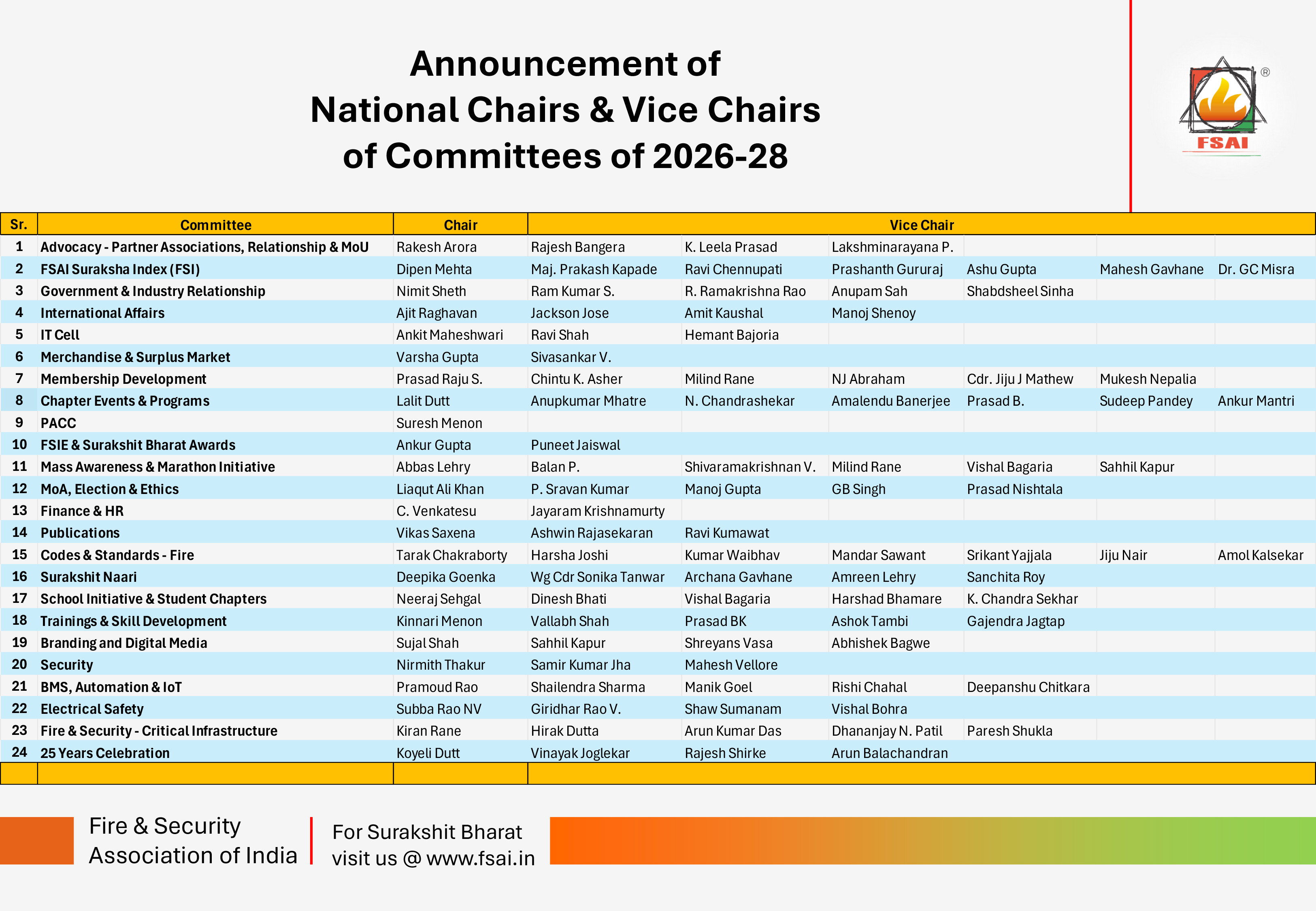 FIRE & SECURITY ASSOCIATION OF INDIA (FSAI) is a non-profit organization established in 2002 representing the Fire Protection, Life Safety, Security, Building Automation, Loss Prevention and Risk Management domains.